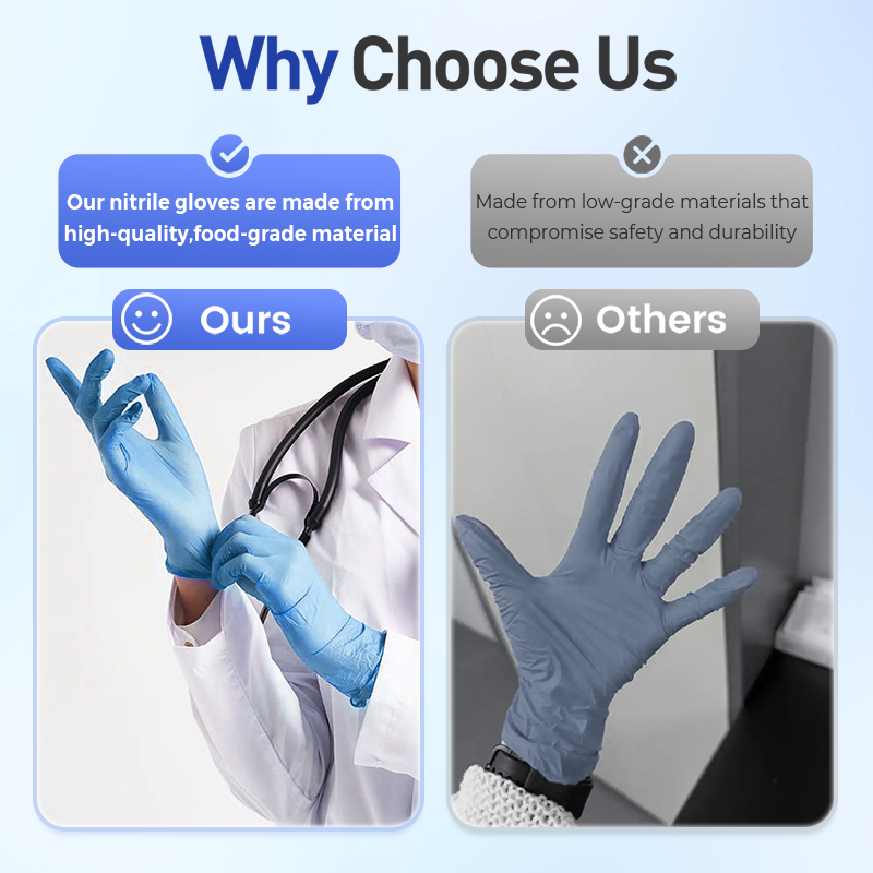 FOOD-GRADE SAFETY – Our nitrile gloves are made from high-quality, food-grade material, ensuring safe handling of food items. Ideal for kitchens, catering, and food service, they meet strict safety standards for food preparation.