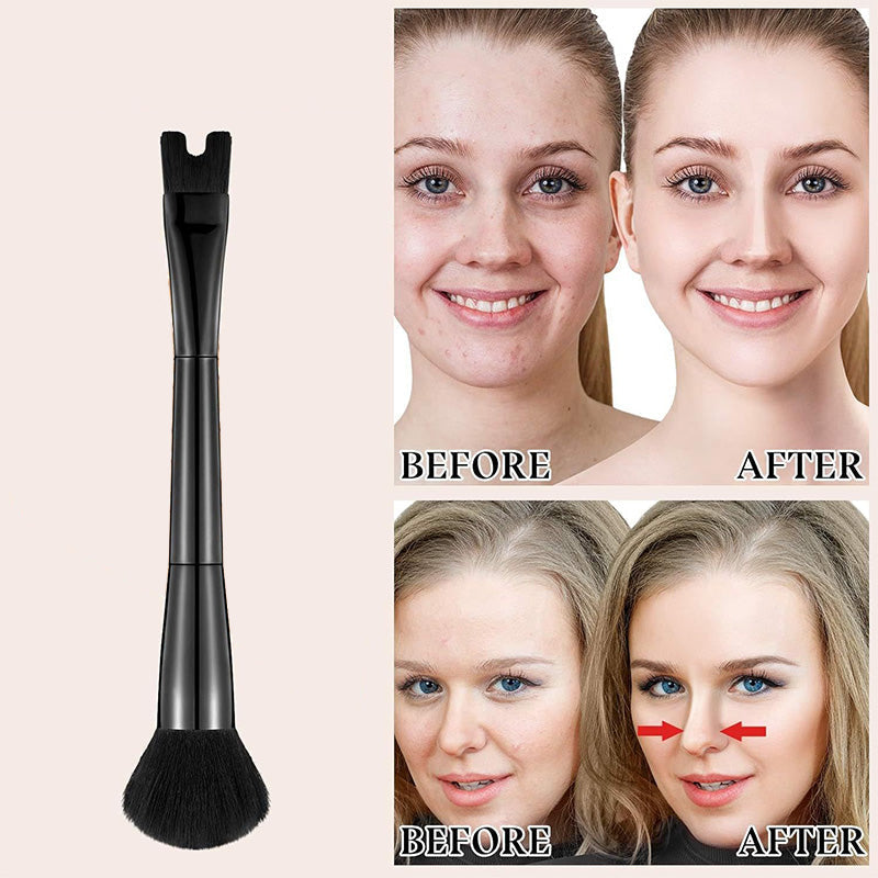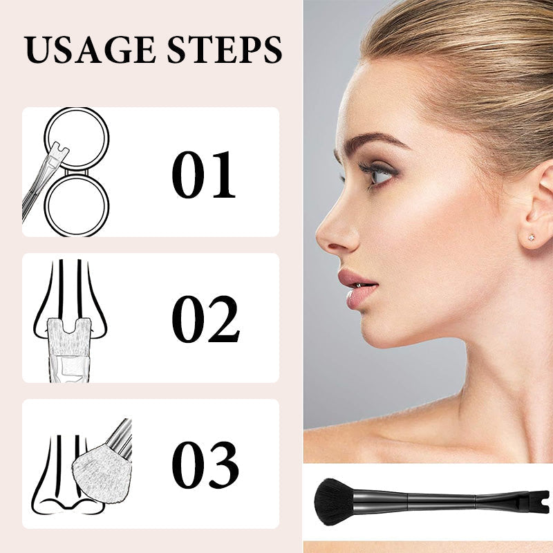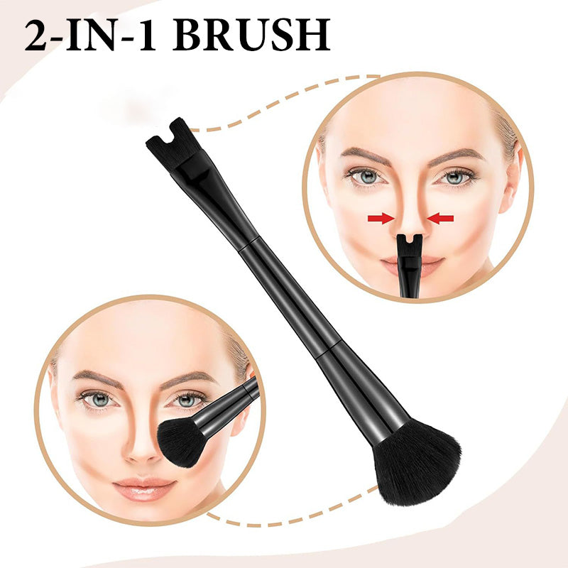 2-IN-1 BRUSH – The unique U-shaped brush head hugs your nose bridge perfectly, blending shadow seamlessly for 3D definition. Flip to the fluffy end to set makeup or soften harsh lines—no more patchy results!