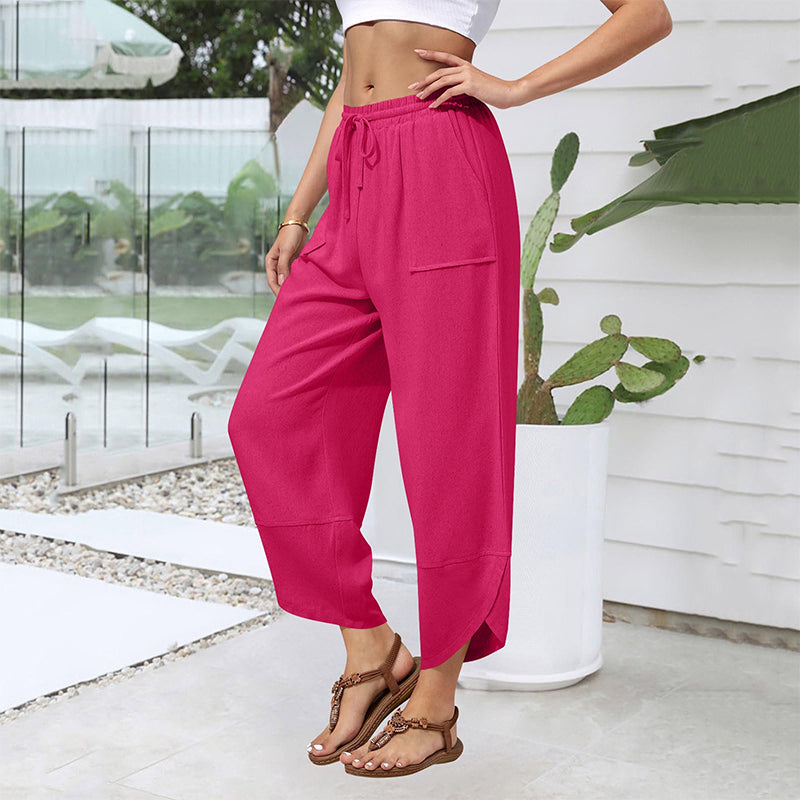 ADJUSTABLE COMFORT WAISTBAND: The elastic waist with drawstring ensures a perfect fit for all body types. No more squeezing into rigid pants—adjust the waistband for all-day comfort, whether you're running errands or lounging at home.
