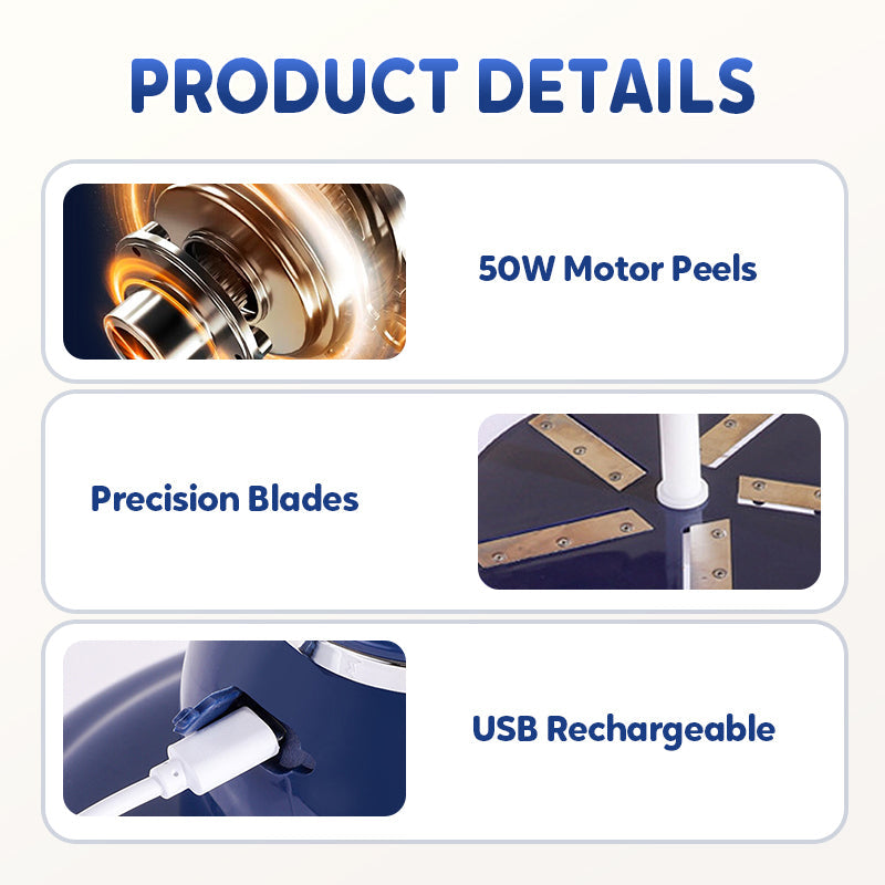 PEEL LIKE MAGIC, NO SWEAT, NO MESS - Just press a button and let the machine do the work—perfectly peeled fruit in 25 seconds flat. The 50W motor peels with power but stays whisper-quiet, thanks to smart cooling tech that prevents overheating.