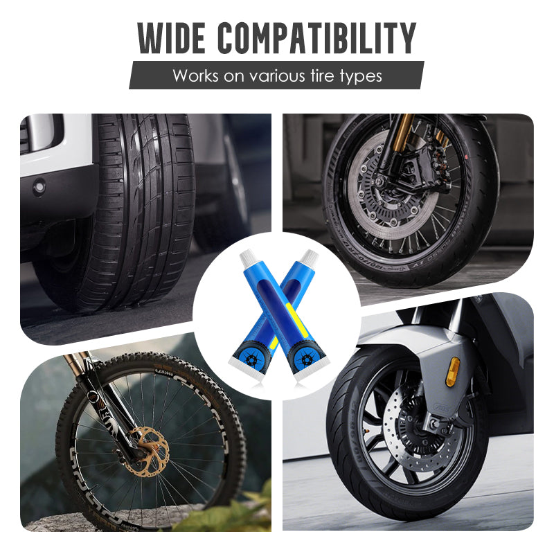 WIDE COMPATIBILITY: Compatible with car, motorcycle, bicycle, and e-bike tires. Works effectively on rubber, plastic, and composite surfaces for versatile use.
