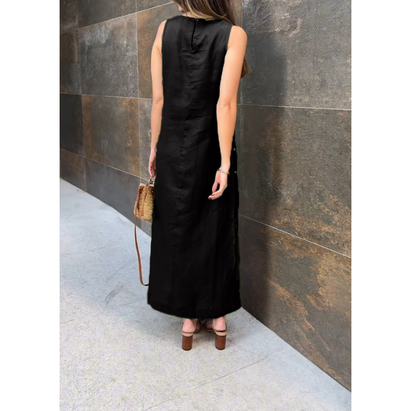 1 * Women's Solid Color Button Side Split Sleeveless Dress