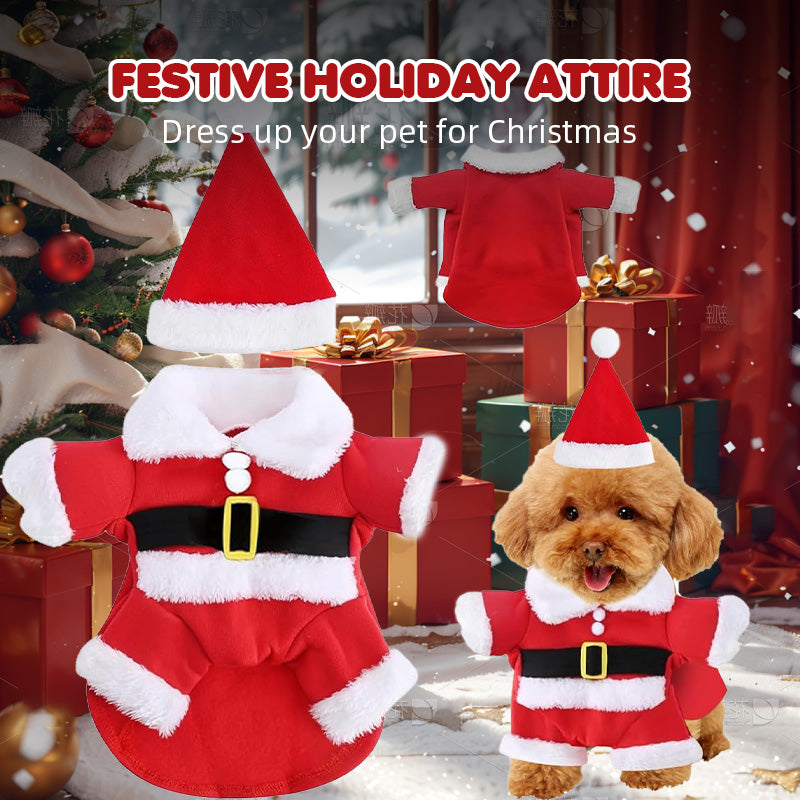 TWO-PIECE COSTUME SET - This complete set includes both the Santa suit and a matching hat. The coordinated look ensures your pet is fully dressed for the occasion, making them the star of any holiday event.