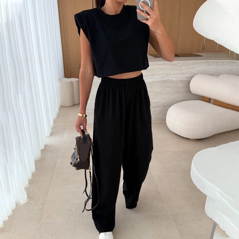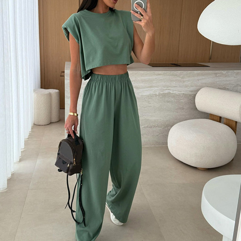 🌸New Arrival 50%OFF💖 Women's Casual Cropped Top & Full-Length Pants Set
