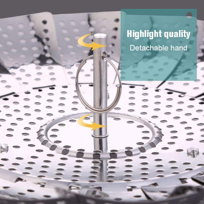 [FOLDABLE AND EXPANDABLE] The vegetable steamer can be folded and expanded, fitting stainless steel pots of any size. Turn any pot into a steamer. Forget those bulky bamboo steamers and choose a small, compact, foldable steamer instead!