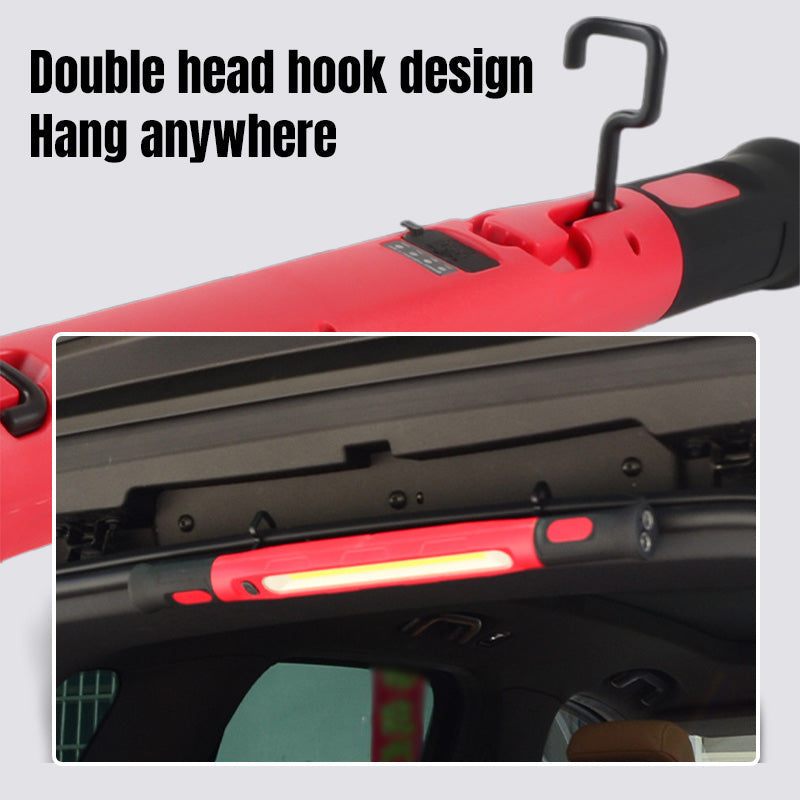 Two strong magnetic bases and hidden 360° swivel hooks let you mount or hang it anywhere — under the hood, on a wall, or above your workspace.