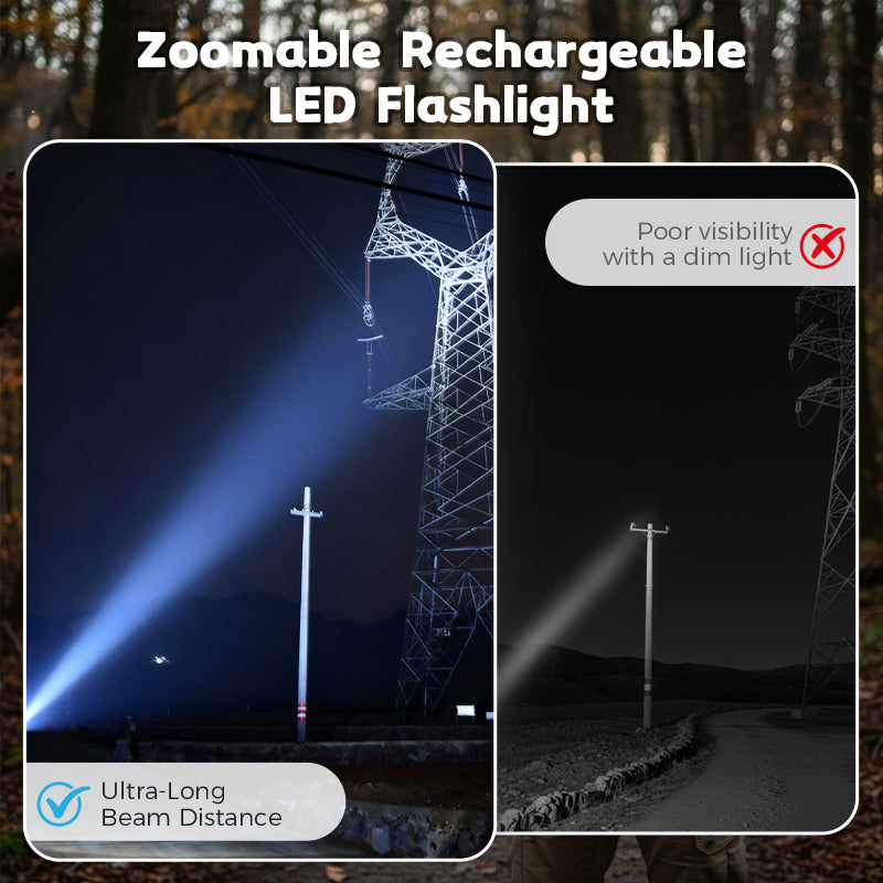 High-Lumen Zoomable Rechargeable LED Flashlight