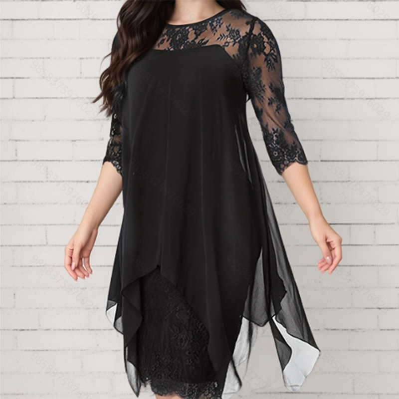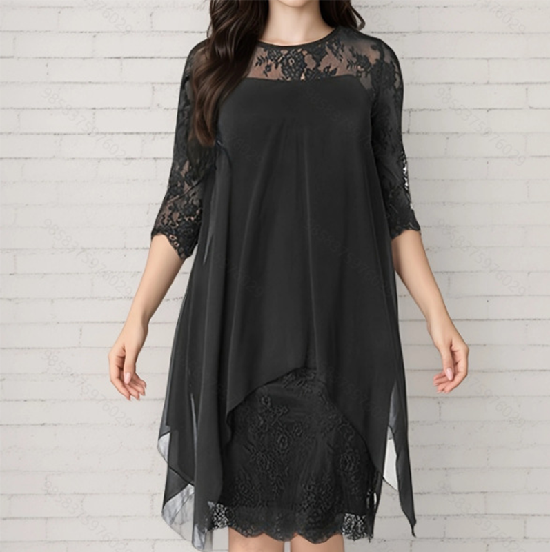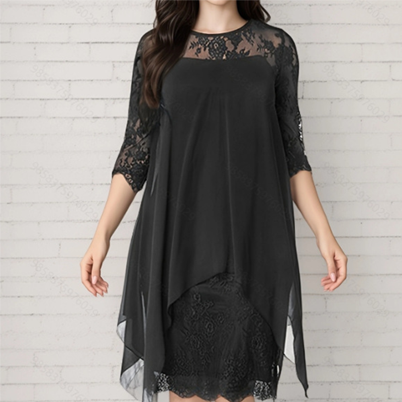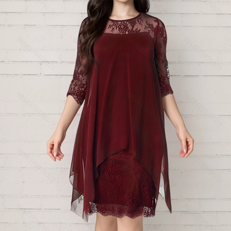 ELEGANT LACE OVERLAY - This dress features a stunning lace overlay that adds sophistication and charm. The intricate details elevate your look, making it perfect for formal events, parties, or special occasions.