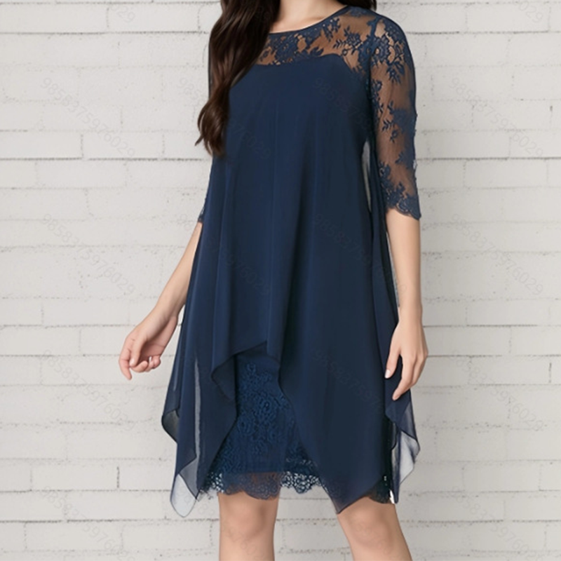 Package Included: 1 * Women's Elegant High-Low Hem Lace Overlay Dress