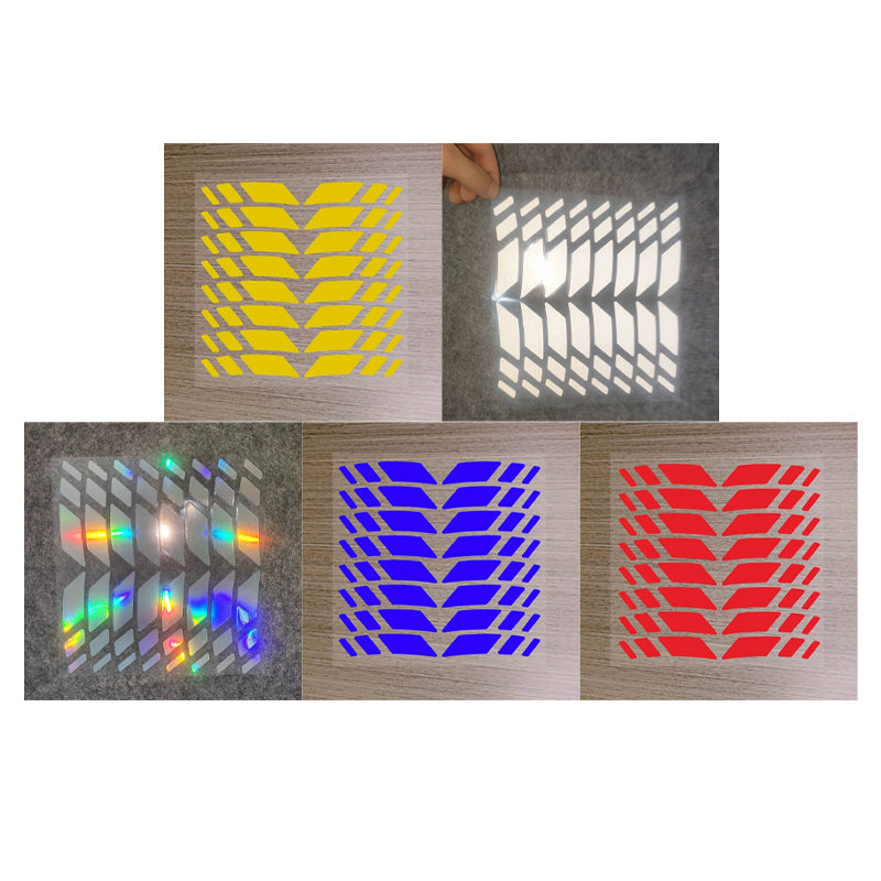 HIGH-VISIBILITY REFLECTIVE MATERIAL - Significantly boosts your visibility to other drivers during nighttime or low-light conditions. The prismatic reflection technology catches and throws back light, making your wheels stand out for enhanced road safety.