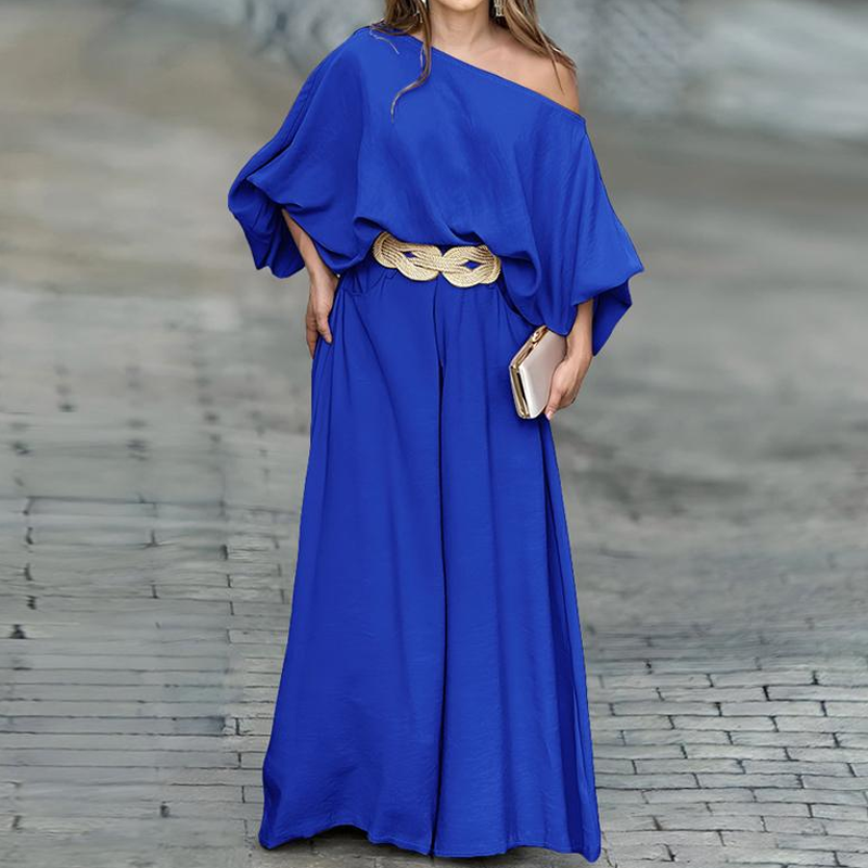 Package Includes: 1×One-Shoulder Top & Wide-Leg Pants Set