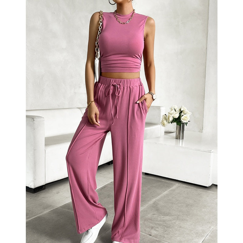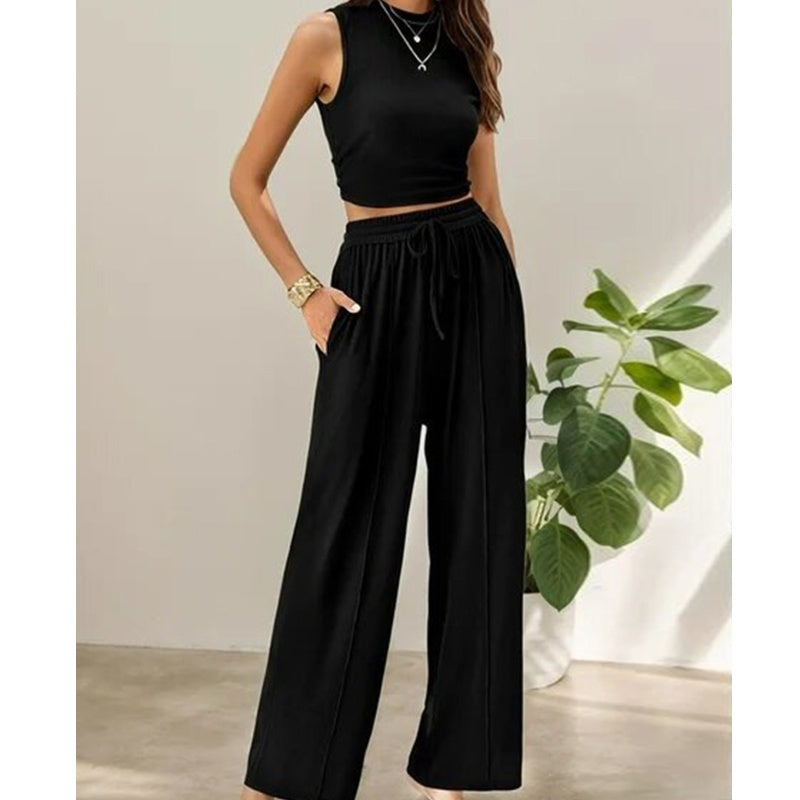🌸New Arrival 50%OFF💖 Women's Summer Solid Short Crop Tank Top & Drawstring Wide Leg Pants 2-Piece Set