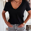 Package Includes: 1 * Women's Solid V-Neck Short Sleeve Tops
