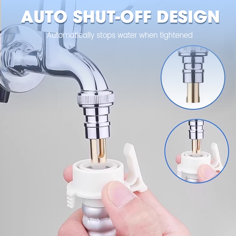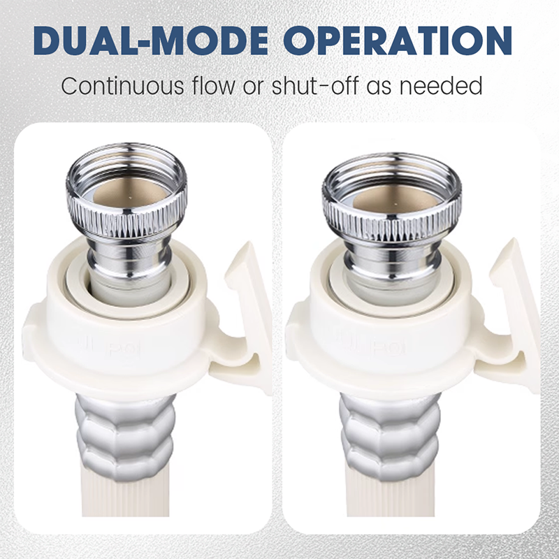 AUTOMATIC WATER SHUT-OFF FUNCTION – The innovative internal mechanism automatically stops water flow when the outer sleeve is tightened, creating a secure seal without needing to turn off the main water supply. This smart feature allows for quick and safe connection or disconnection of washing machine hoses, preventing accidental flooding and water damage.