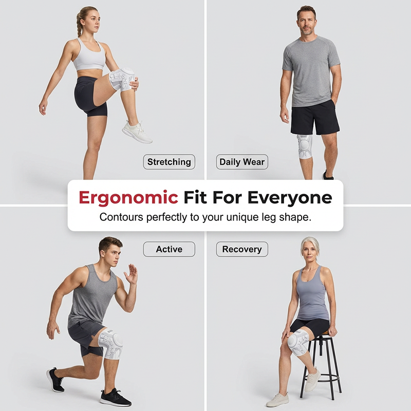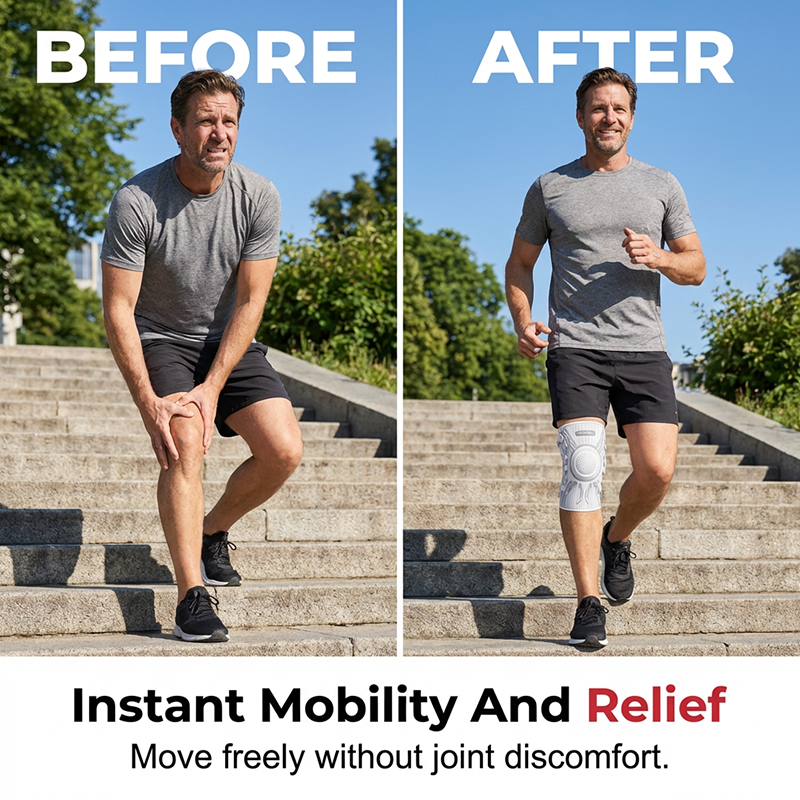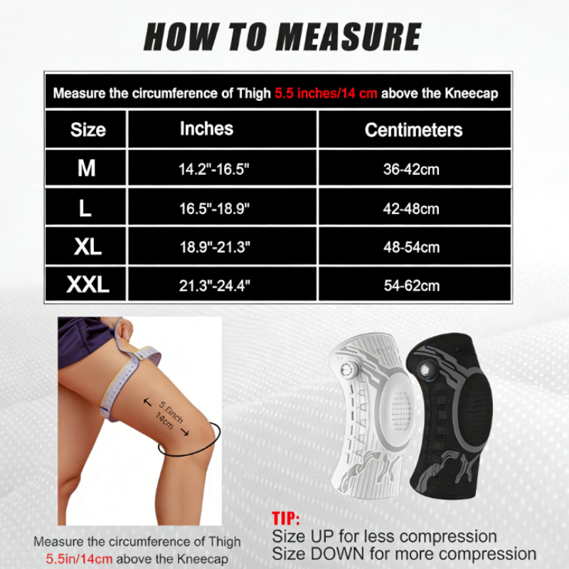 SECURE ANTI-SLIP GRIP - Designed with internal silicone waves and high-elasticity fabric, the brace stays firmly in place without sliding down. Enjoy uninterrupted support and comfort, whether you're running, jumping, or squatting.