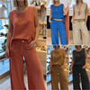 ⏳Limited time 49% off! 🍃Solid Color Sleeveless Top & Wide Leg Pants 2-PCS Set