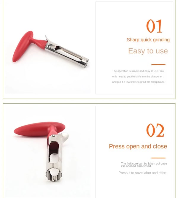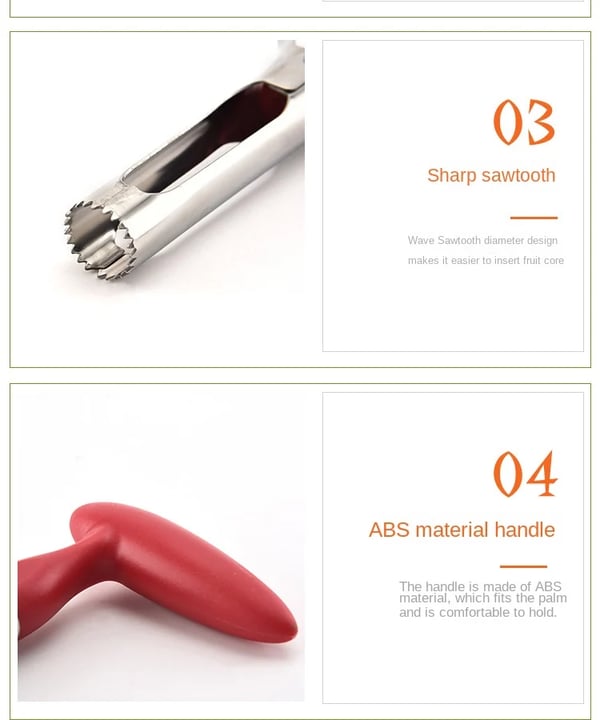 【 Ergonomic Handle 】Beautiful apple red handle has been molded to give you a comfortable and stable grip. The non-slip design makes coring easy and fun. Most people can hold and use it comfortably.