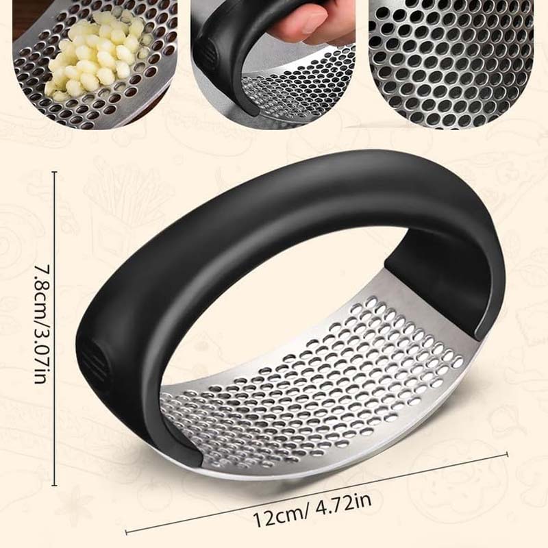 DURABLE STAINLESS STEEL CONSTRUCTION: Crafted from high-grade stainless steel, this press resists rust and corrosion while delivering long-term strength. The reinforced frame easily crushes whole garlic cloves with minimal hand strain, offering efficient performance that outlasts flimsy plastic alternatives.