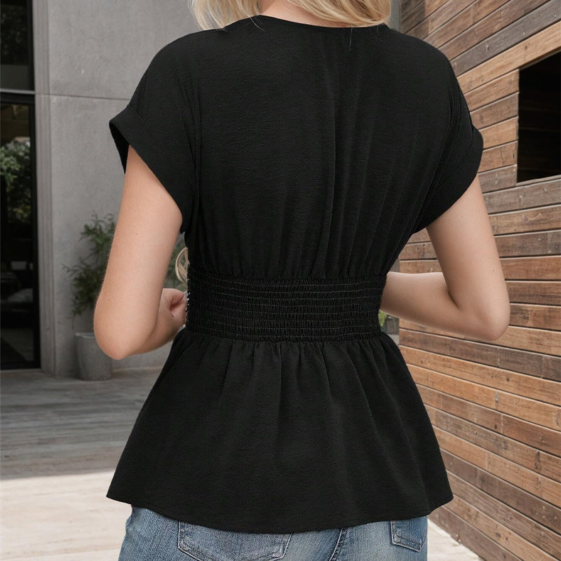 🔥2025 Summer New-🩷Women's V-neck Waist-slimming Solid Color Plunging Sleeve Skirt Pleated T-Shirt