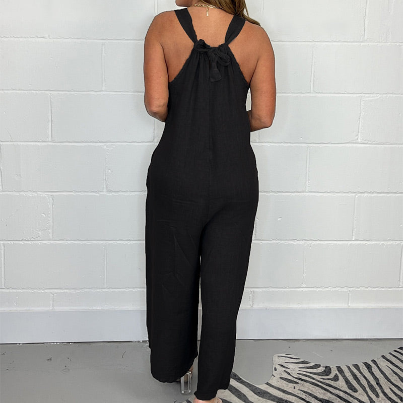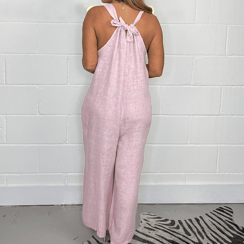 SLEEVELESS WITH BACK STRAPS: Featuring sleeveless arms and elegant back straps, this jumpsuit not only keeps you cool, but also adds a touch of sophistication to your outfit. The straps provide additional support and style.