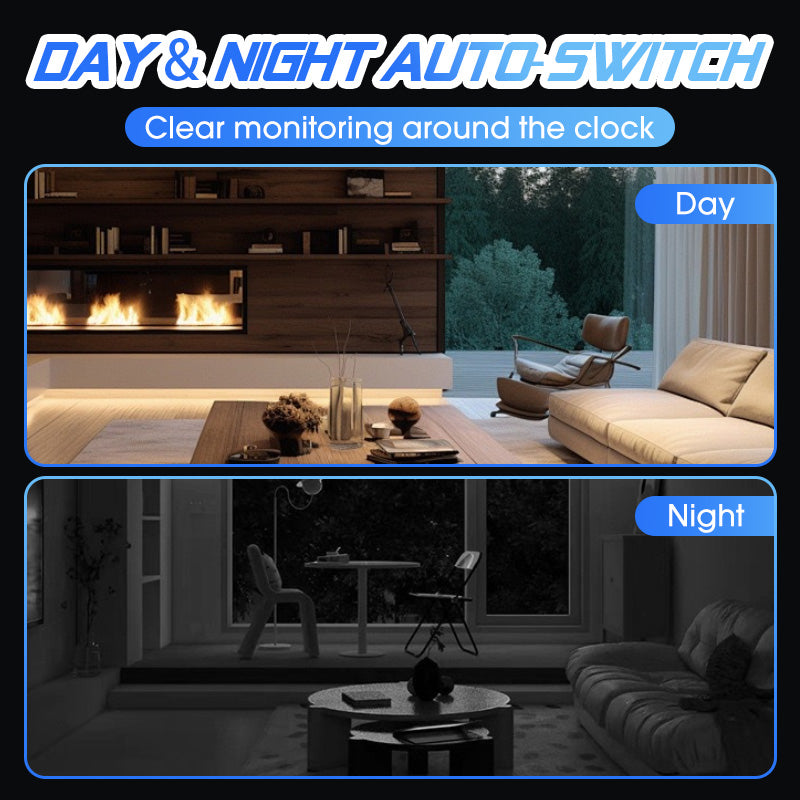 DAY/NIGHT VISION AUTOMATIC SWITCHING – Equipped with infrared technology, the device transitions effortlessly to night vision in low-light conditions. Crisp, clear footage is guaranteed around the clock, providing uninterrupted protection for your property.