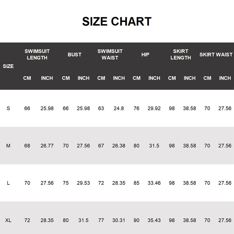 Package Includes: 1* Women’s Sexy One Piece Swimsuit with Matching Swim Long Skirt
