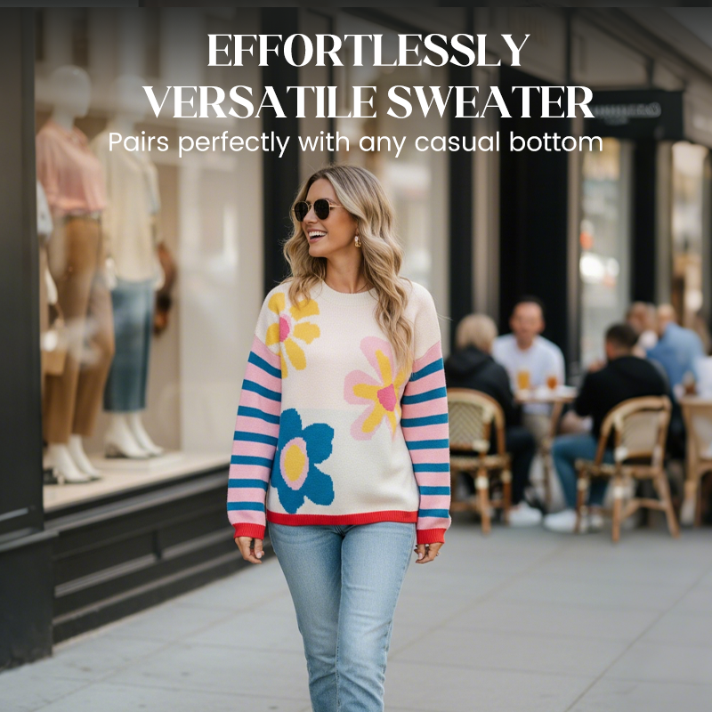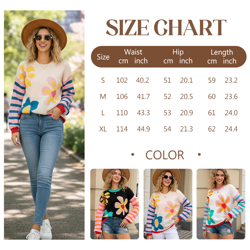 Package Include: 1 * Women’s Color-Block Floral Striped Pullover Sweater
