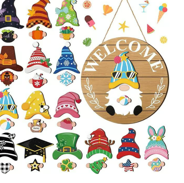 🎄Interchangeable Wooden Gnome Welcome Sign🎈